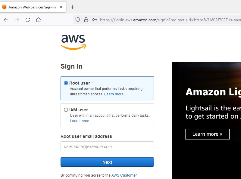 เริ่มต้นด้วยการสมัคร Amazon Web Service ใน amazon.com และ Login ให้ผ่านก่อนนะครับ