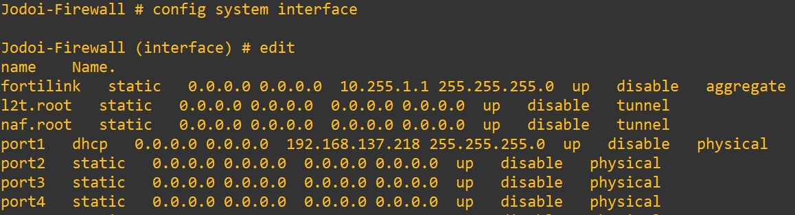 FortiGate-VM64-KVM (global) # set hostname Jodoi-Firewall