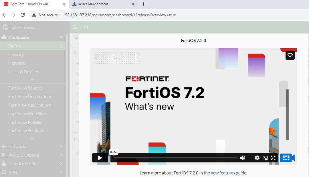 สิ่งที่ต้องเตรียมคือ file fortios.qcow2 และ empty30G.qcow2 ในที่นี้จะติดตั้ง FGT_VM64_KVM-v7.2.4.F-build1396-FORTINET.out.kvm โดยทำได้ตามวีดีโอด้านล่างนี้ครับ